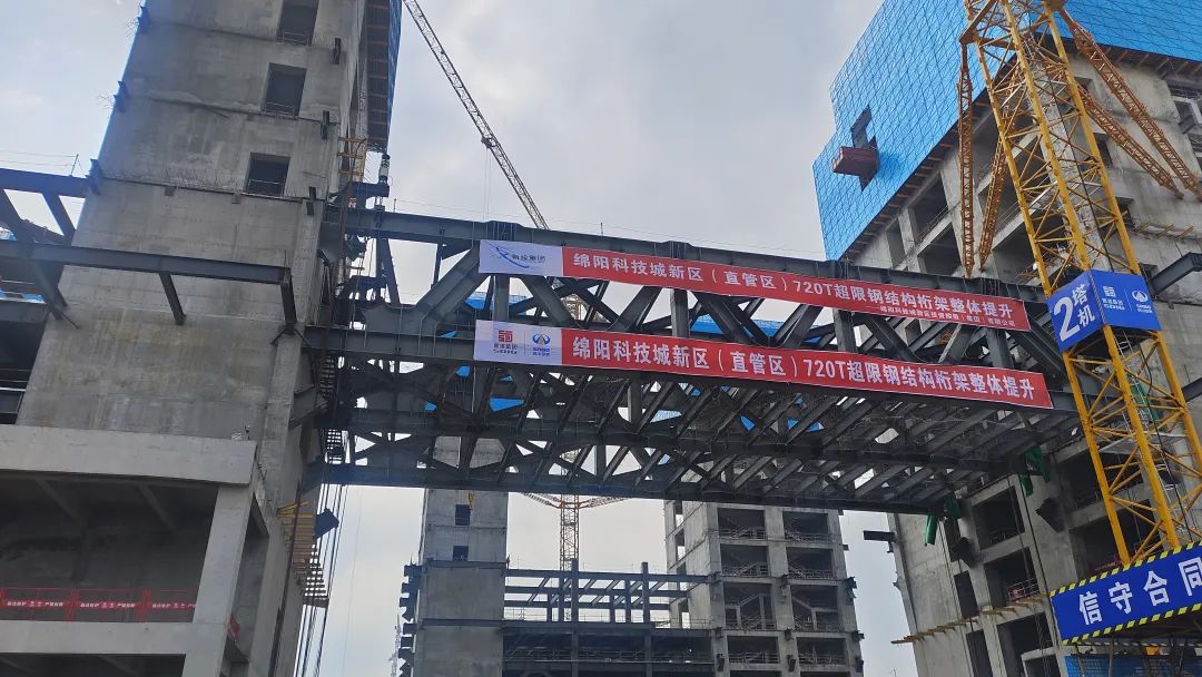 720噸鋼桁架騰空18.3米!科技服務(wù)中心項(xiàng)目用上新工藝